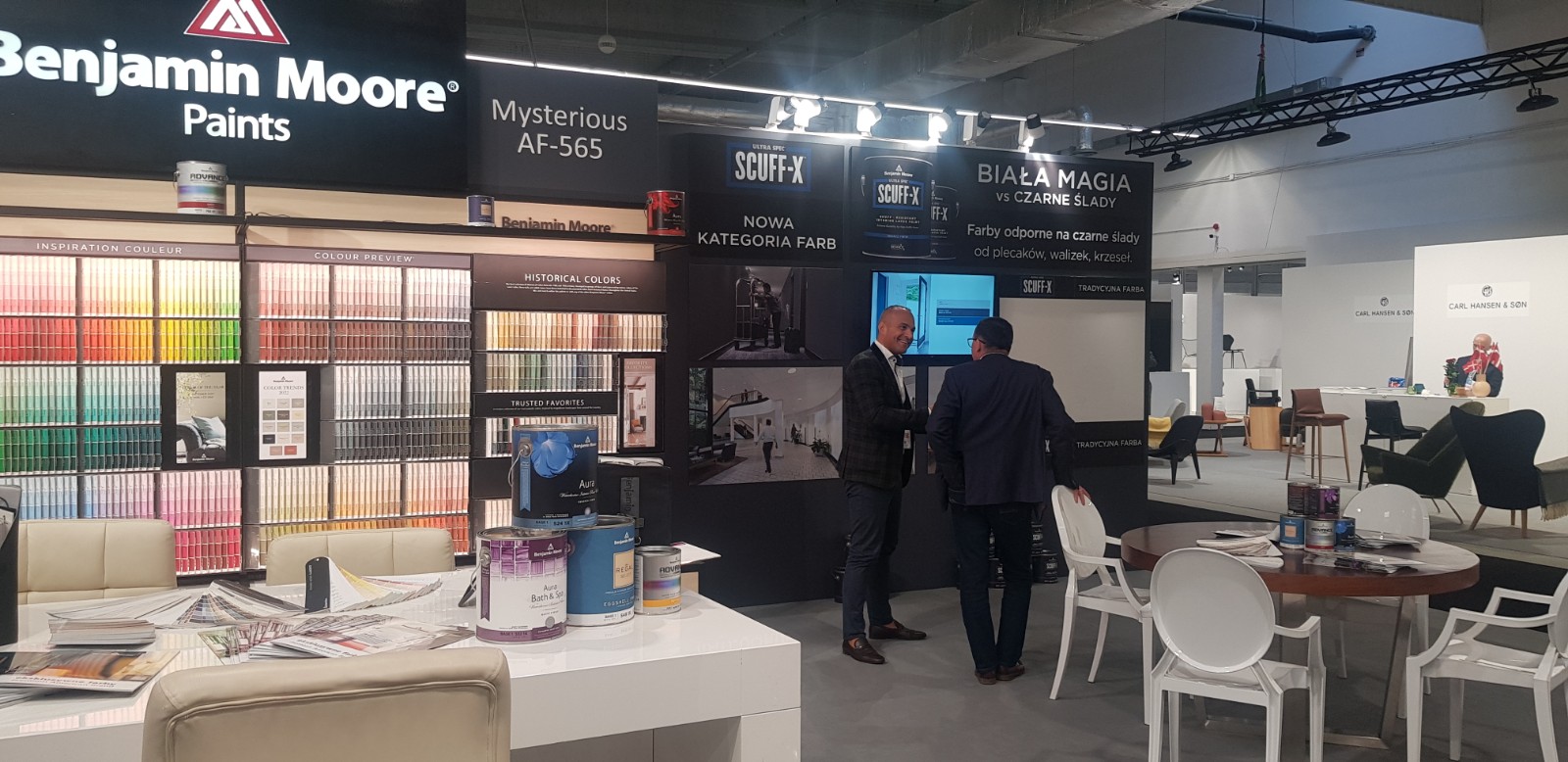 Skoro padło słowo „kolor” nie mogło zabraknąć nas - amerykańskiej marki Benjamin Moore. Na obszernym stoisku E2. 105B w hali E prezentowaliśmy to, z czego słyniemy – wyjątkową kolorystykę, w tym „KOLOR ROKU 2022” i trendy na kolejny sezon oraz najwyższą jakość naszych farb.