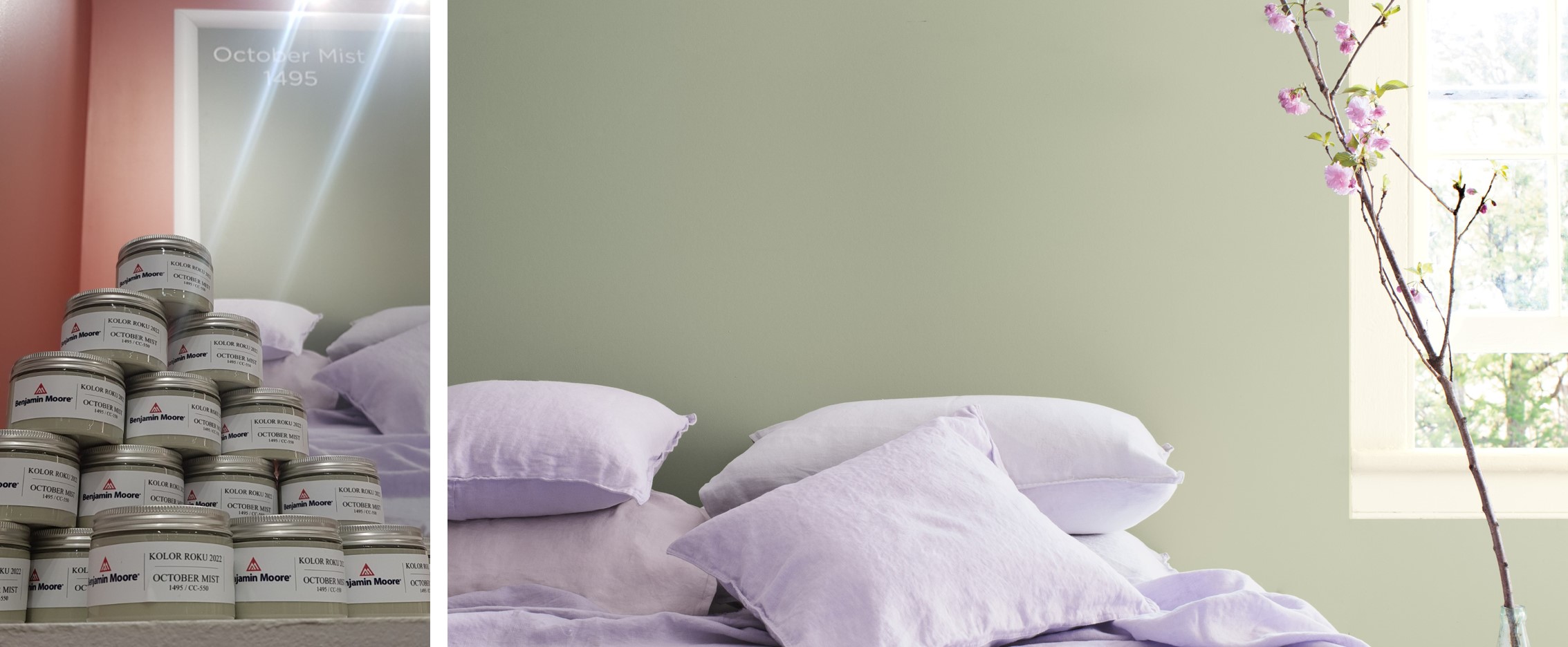 Nasz barwny bohater na 2022 rok, czyli „October Mist 1495” – delikatny odcień szałwii przypadł do gustu większości Naszych Gości. Nasze próbki koloru sygnowane wizerunkiem samej Betty Moore rozchodziły się jak świeże bułeczki.