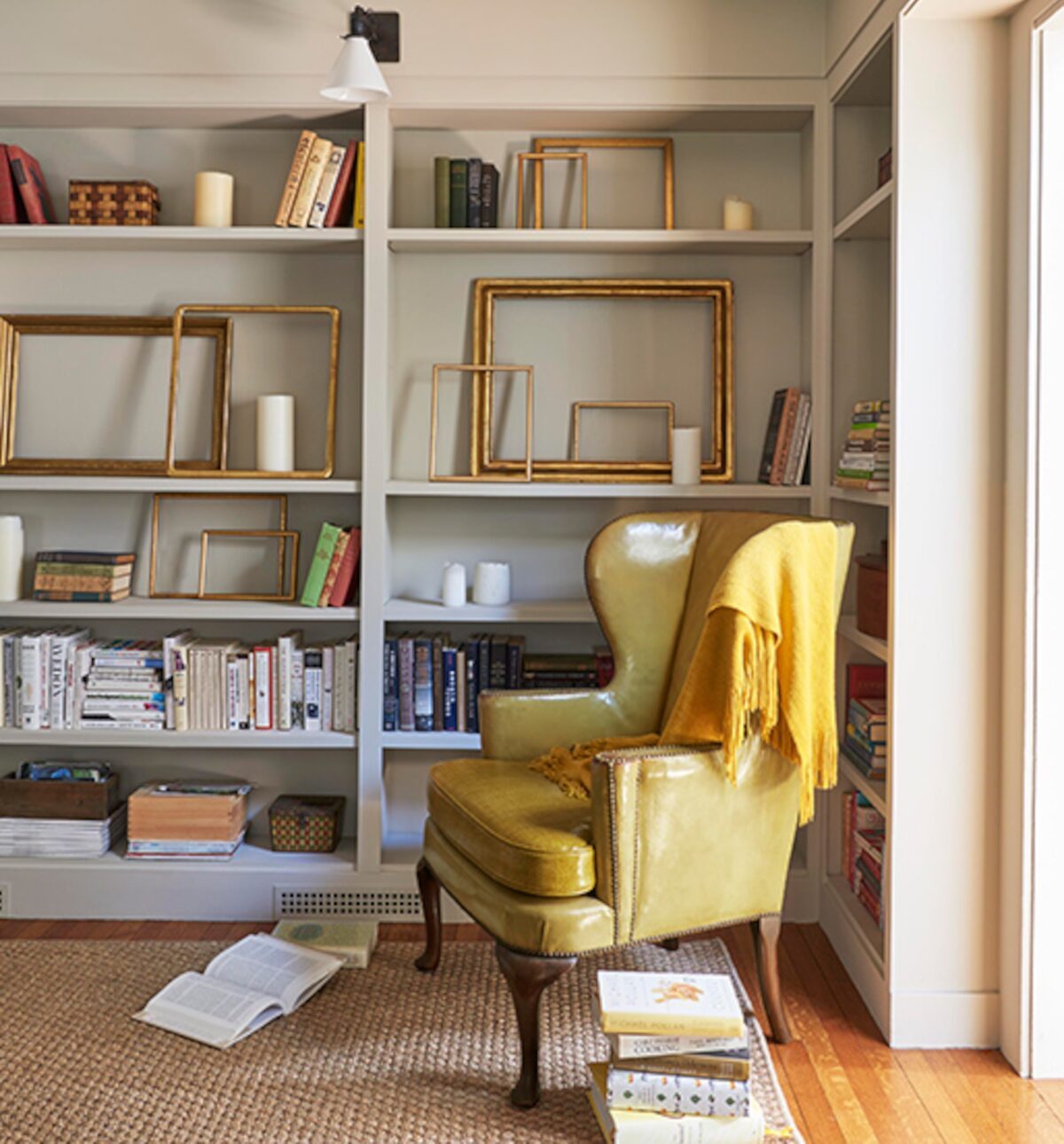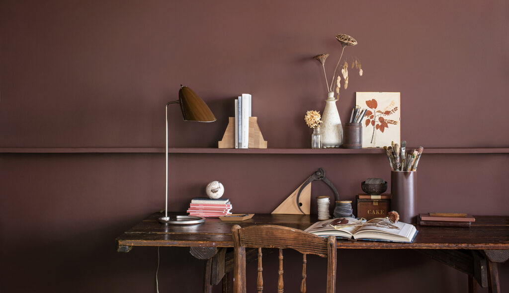 Biblioteka, gabinet, kącik do czytania, to miejsca stworzone do odpoczynku i okazjonalnej pracy. Pomalowanie ścian i mebli neutralnym kolorem farby tworzy ciche tło dla zebranych dodatków w tej spokojniejszej części domu.