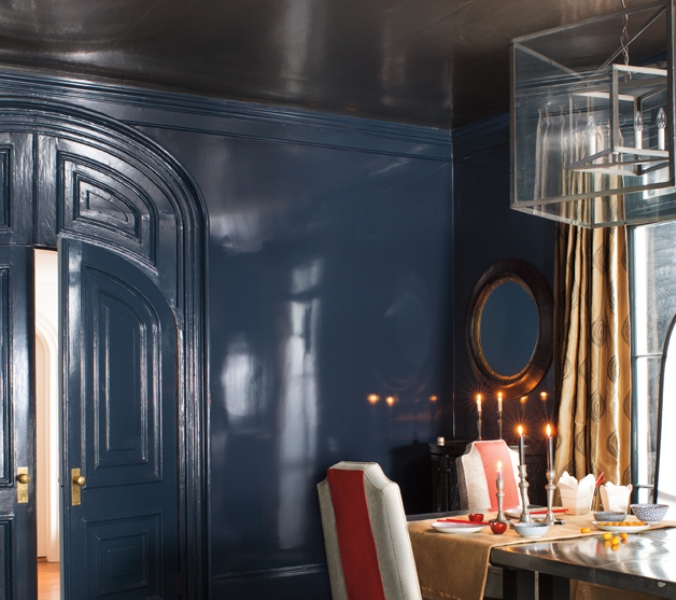 Słynny „eggshell" którym w Benjamin Moore określamy "półmat" niekiedy jest już niewystarczający... Klienci decydują się nawet na tak błyszczące ściany, jak te, widoczne na zdjęciu powyżej…