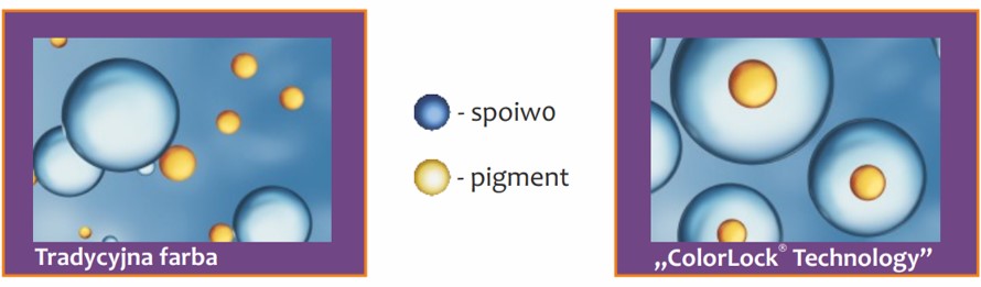 Dzięki opracowaniu opatentowanej technologii „ColorLock® Technology” i zastosowaniu jej w farbie elewacyjnej „Aura® 629 Exterior” stworzono wykończenie, które niczym filtr, skutecznie chroni elewacje przed działaniem czynników klimatycznych, szczególnie przed promieniowaniem UV oraz przyłączaniem zabrudzeń.