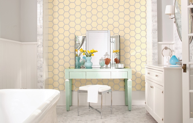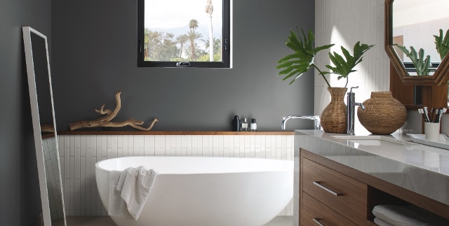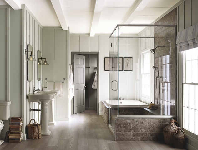 Wyczaruj elegancką, kolorową ŁAZIENKĘ chronioną farbą „AURA Bath & SPA” marki Benjamin Moore.