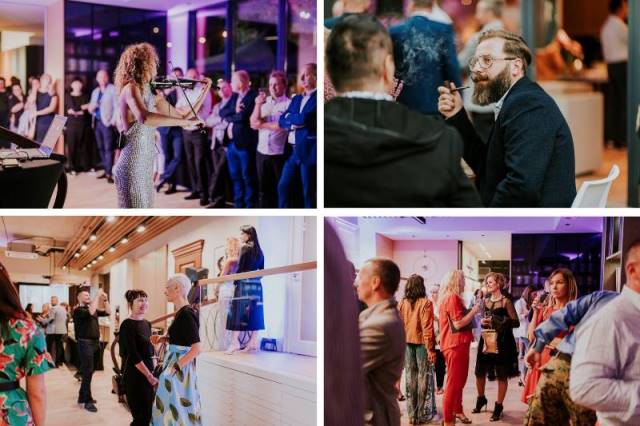 O oprawę kulinarną zadbał kreatywny szef kuchni Krystian Skwierz, nastrojową muzykę zapewniła wyśmienita skrzypaczka, a w kuluarach toczyły się rozmowy o sztuce i biznesie, aż do późnej nocy.