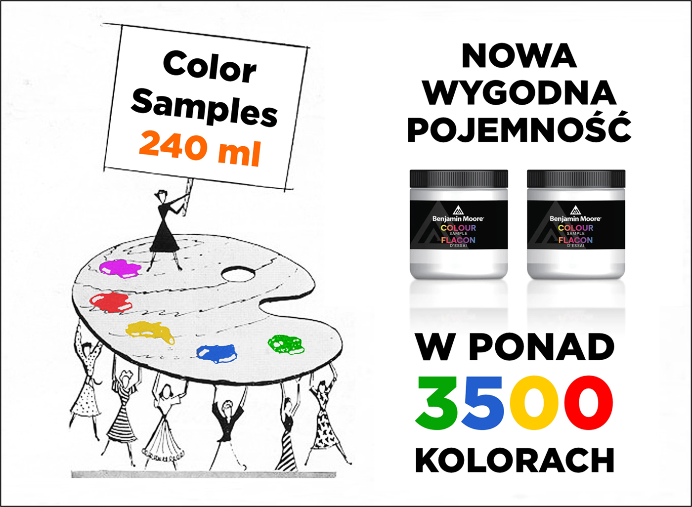 Nowy Color Sample 200, tak jak jego poprzednik (w większym opakowaniu), jest testerem naszych kolorów, barwionym w pełnej palecie Benjamin Moore.