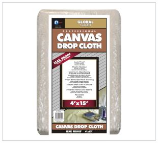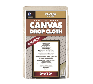 leak proof plastic back canvas drop cloth, dimensions: 2.7 x 3.6 m. Perfectly protects the substrate, e.g. floors, furniture, countertops against dust or staining with paint or other liquid. Composition: 54% cotton, 36% polyester, 10% polyethylene.