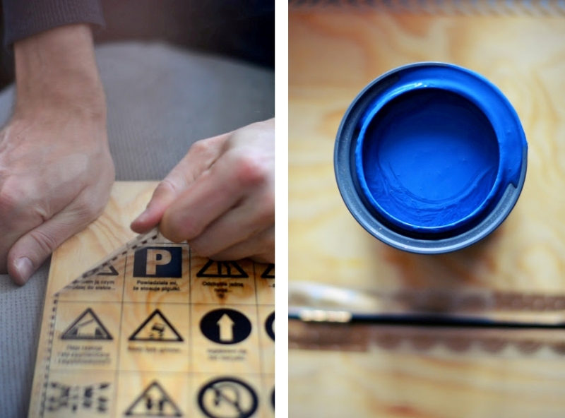 „Podobał mi się zarys drewna - kształt słojów, przechodzące się kolory. Wcześniej niewidoczne pod, choć przezroczystą, zadrukowaną naklejką. Mimo to wnętrze sklejkowej książeczki postanowiłam przemalować, by stało się jak najbardziej uniwersalne. Miałam jeszcze nienapoczętą puszkę farby kredowej Benjamin Moore w pięknym kolorze swallows tale (…). Ta niewielka powierzchnia wydała mi się idealna, do tego właściwości farby (możliwość pisania po niej kredą) fantastycznie wpisywały się w wielozadaniowość ramki.”