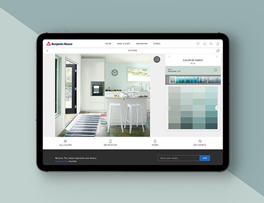 • błyskawicznie dopasować ulubione kolory z palet marki Benjamin Moore,