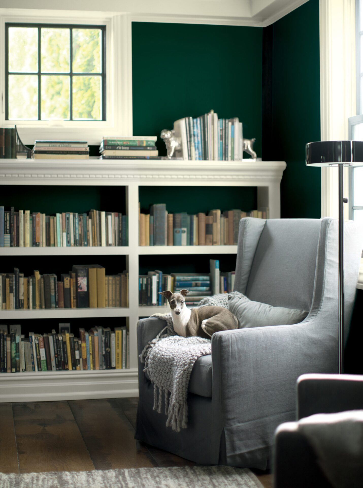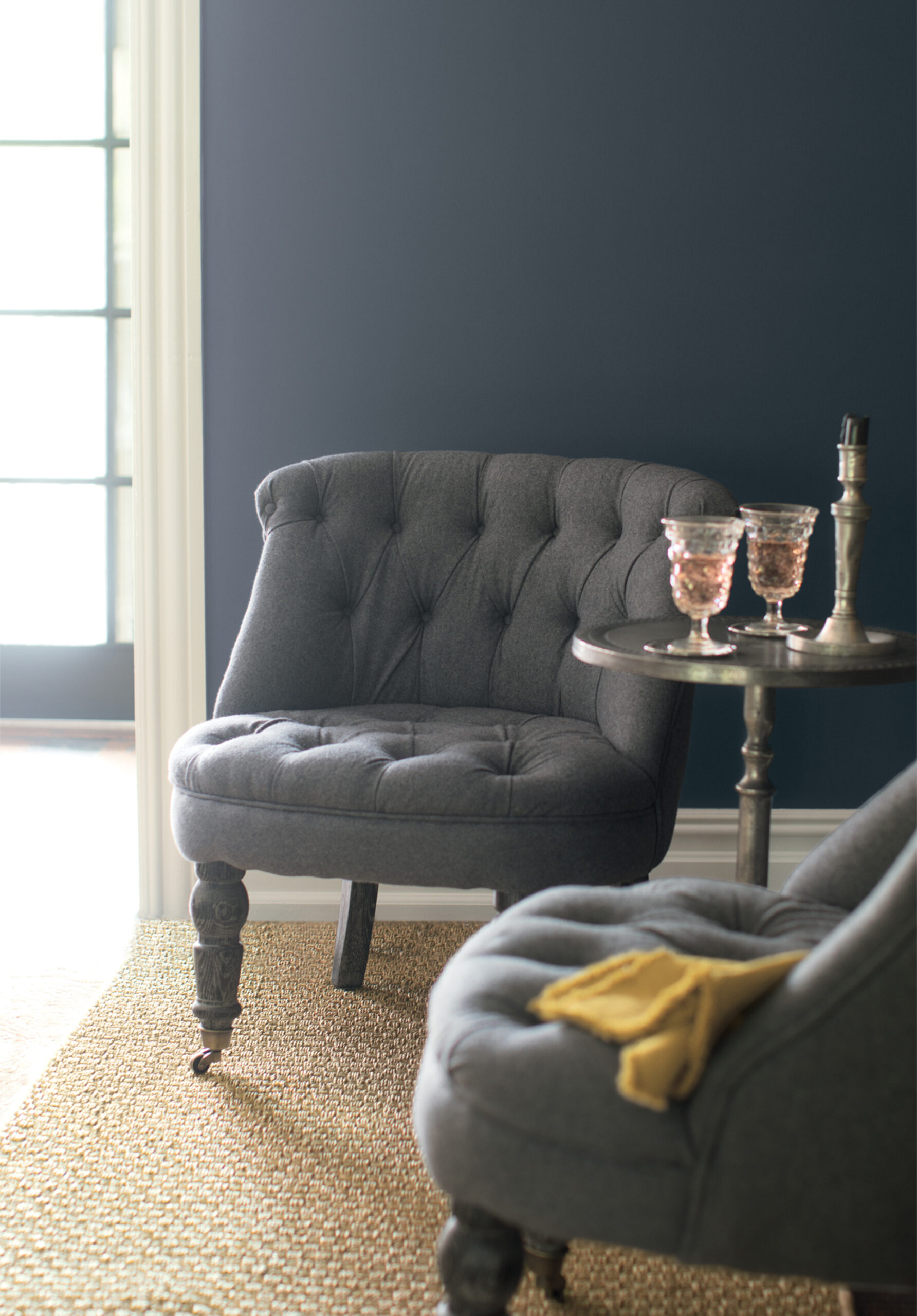 Odcienie przywodzą na myśl „pokolorowane” szarości, miękkie płótna, delikatne metaliczne akcenty, a głębokie odcienie zieleni i granatu obecne w palecie, zapewniają odpowiednią równowagę całości.