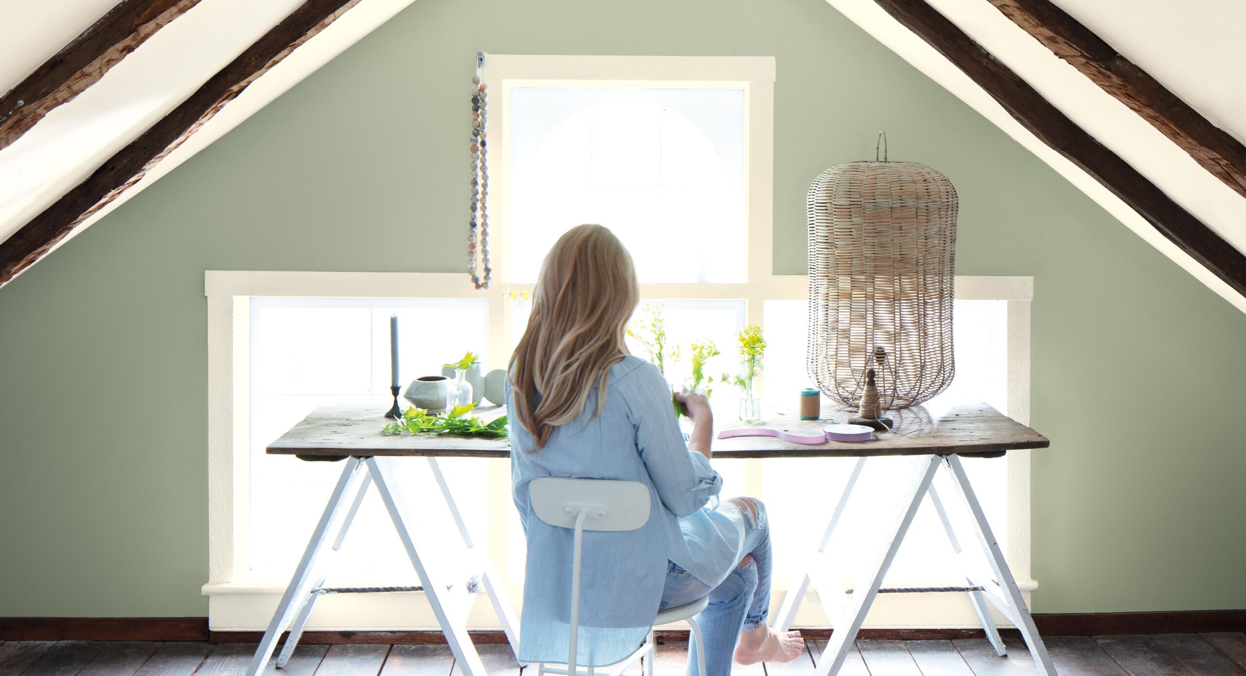 „October Mist 1495” delikatnej szałwii, która tworzy neutralne tło dla kreatywnej ekspresji innych kolorów.