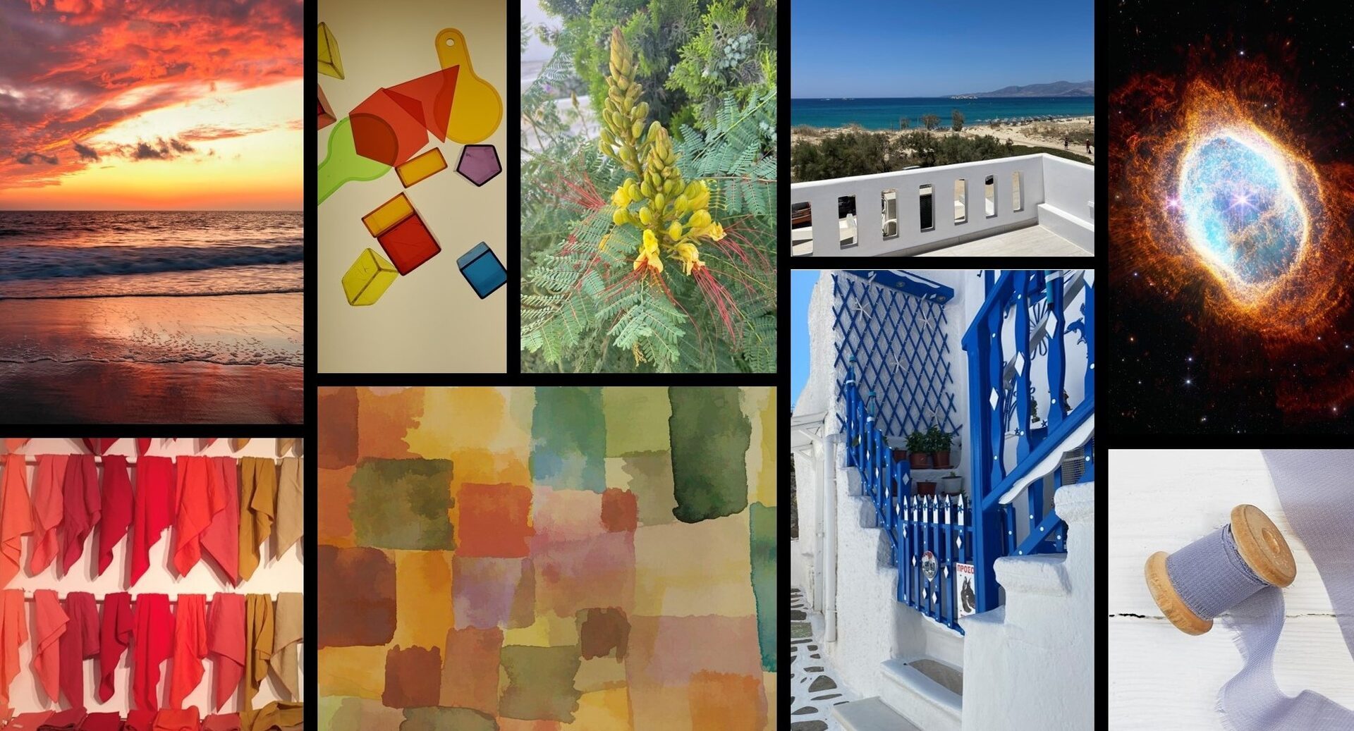 Powyższy kolaż przedstawia inspiracyjne obrazy zebrane podczas tegorocznych podróży i badań nad kolorami, które przykuły szczególną uwagę Łowczyń trendów Benjamin Moore.