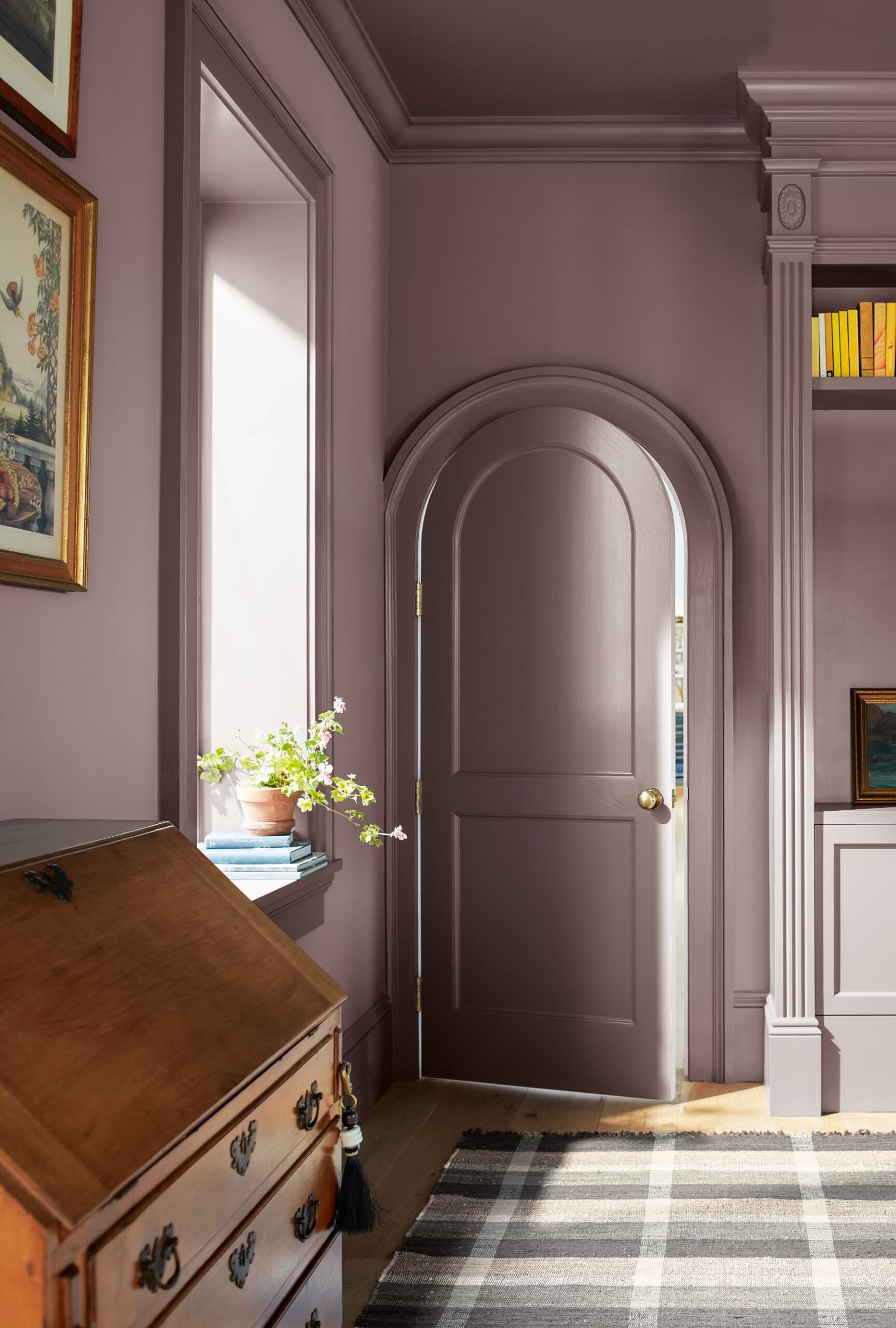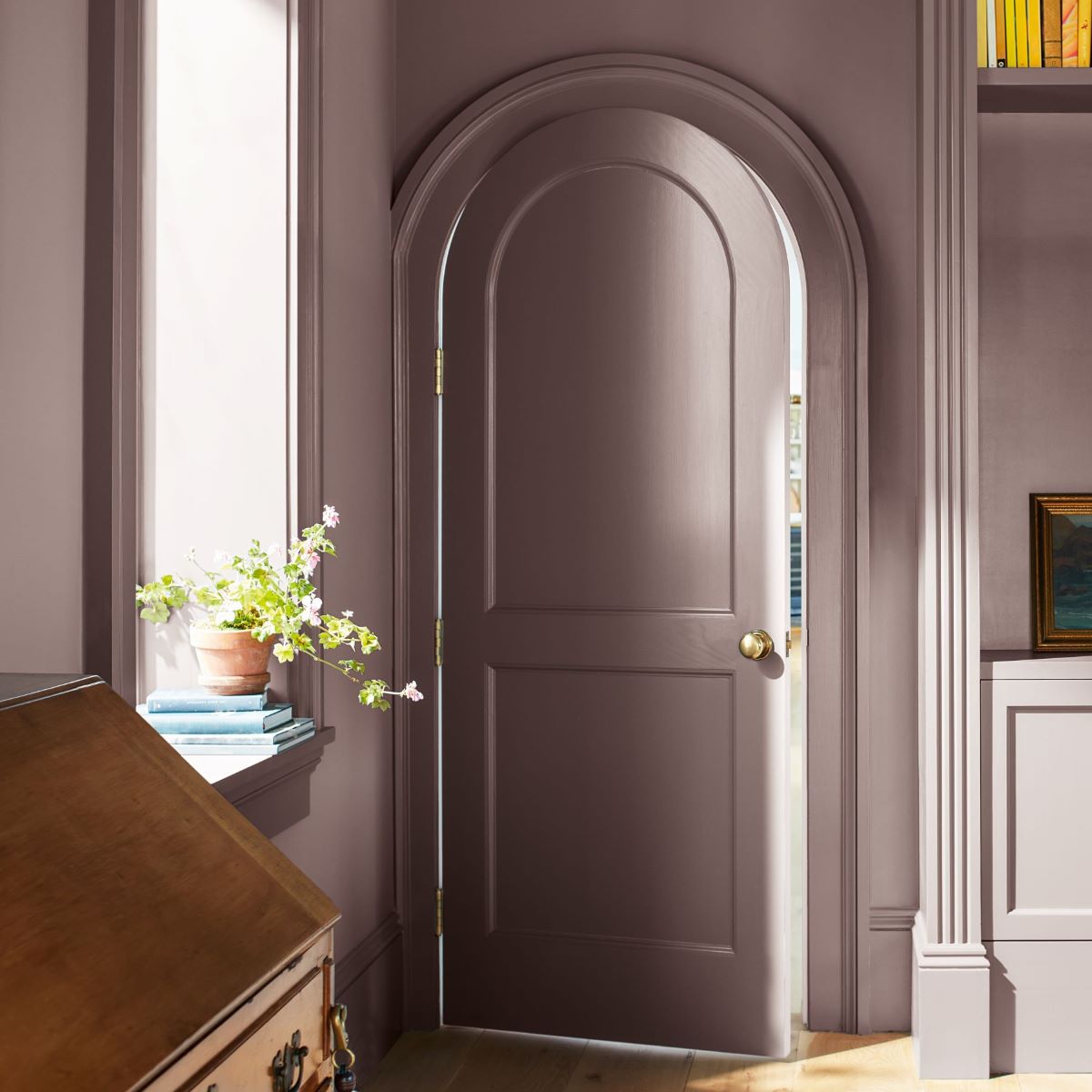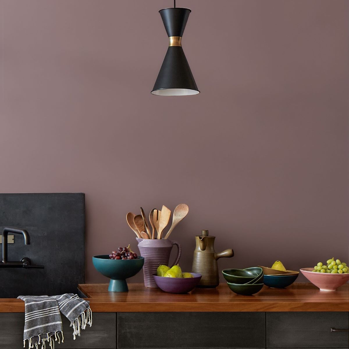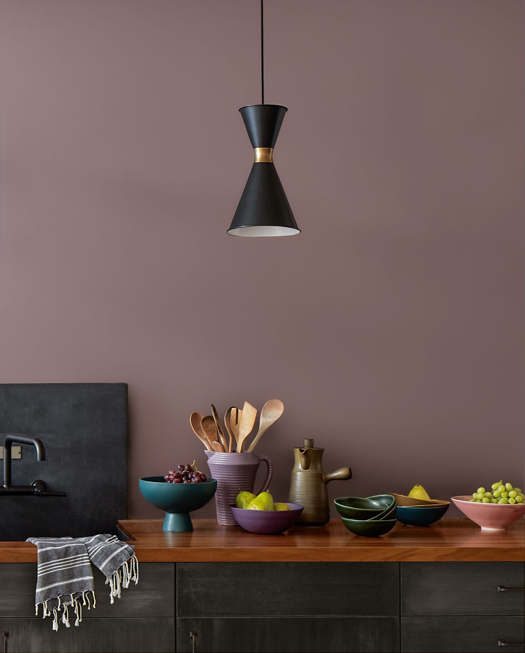 Projektując wnętrze w kolorze „Cinnamon Slate” i wprowadzając cieplejsze akcenty, np. złota i bursztynu sprawimy, że odcień będzie wyraźniejszy, bardziej rozpoznawalny. I odwrotnie, stosując chłodniejsze kolory w połączeniu z zimniejszą barwą oświetlenia oraz śliwkowe odcienie, „Cinnamon Slate” stanie się bardziej neutralny.