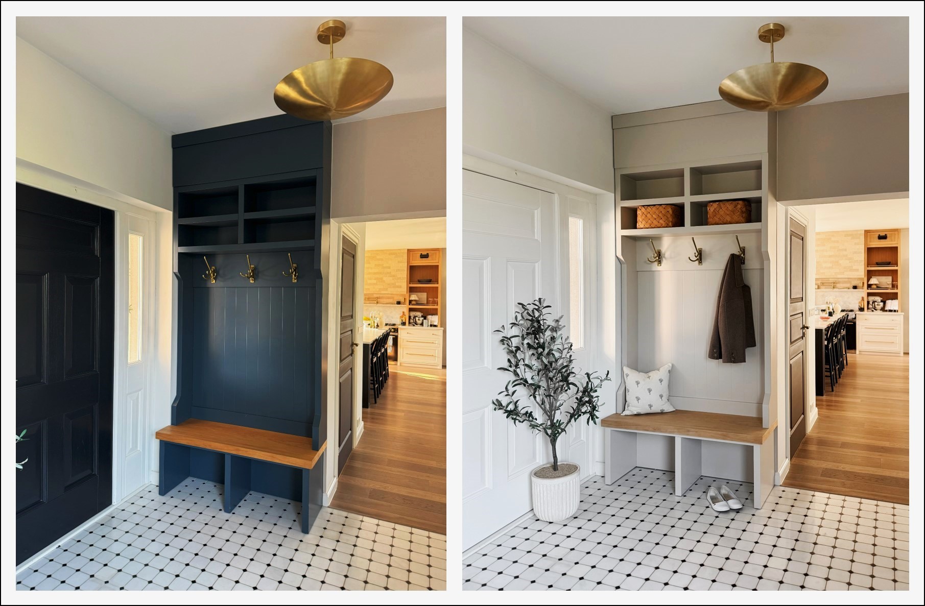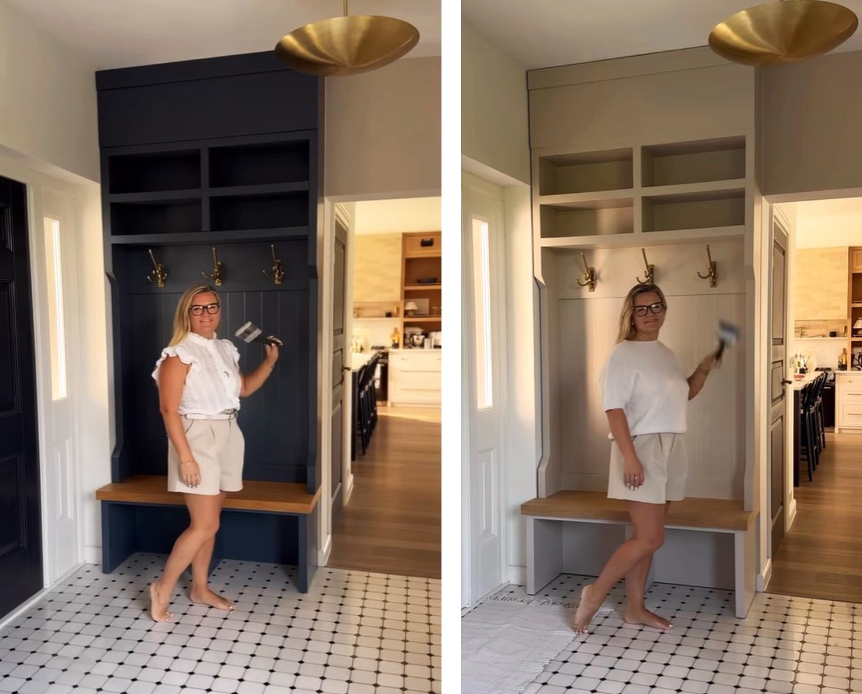 Jak mawia blogerka „Wszystko musi się zgrać”, dlatego nowy kolor zabudowy poszybował z jednej skali barwnej na jej drugi koniec. Ostatecznie Karolina wybrała pastelowy odcień NCS S 2005–Y50R, by zgodnie z przytoczoną powyżej regułą, dopasować kolor zabudowy z siedziskiem do koloru szafy, stojącej w innej części wiatrołapu.