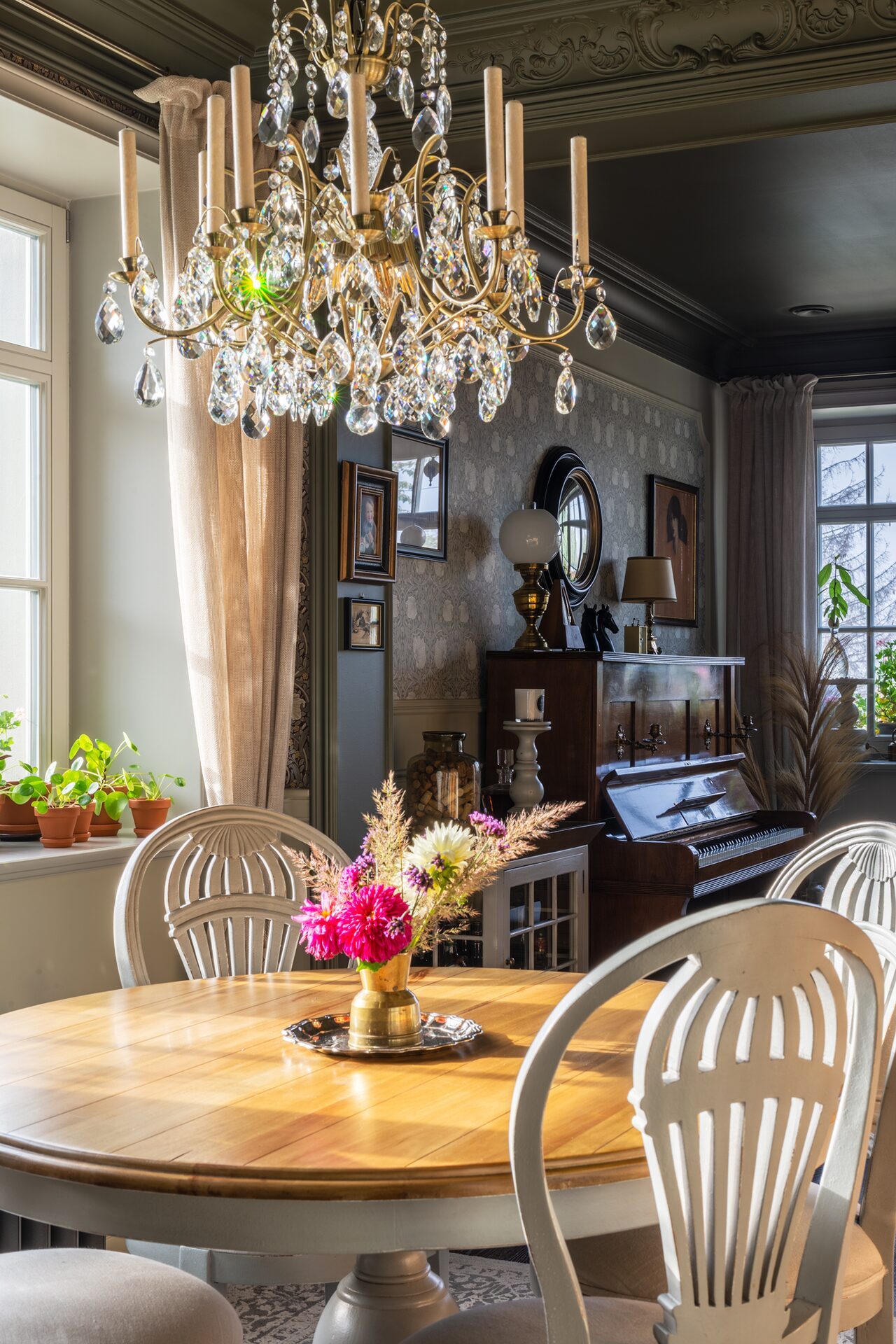 Zbyt wiele mnie zachwyca i ciężko jest się zdecydować na konkretne rozwiązania. Pomyślałam wówczas, że świetnie było by posiadać kilka nieruchomości w różnych lokalizacjach i stylach wnętrz nawiązujących do otoczenia. Mój pierwszy podmiejski dom charakteryzował się minimalistyczną bryłą, a wnętrza były typowo skandynawskie. Jednak po kilku latach dotarło do mnie, że kocham Vintage i znacznie lepiej odnajduję się w mniejszych przestrzeniach, we wnętrzach mocno wypełnionych meblami, tapetami, w ciemnych tonacjach kolorystycznych.