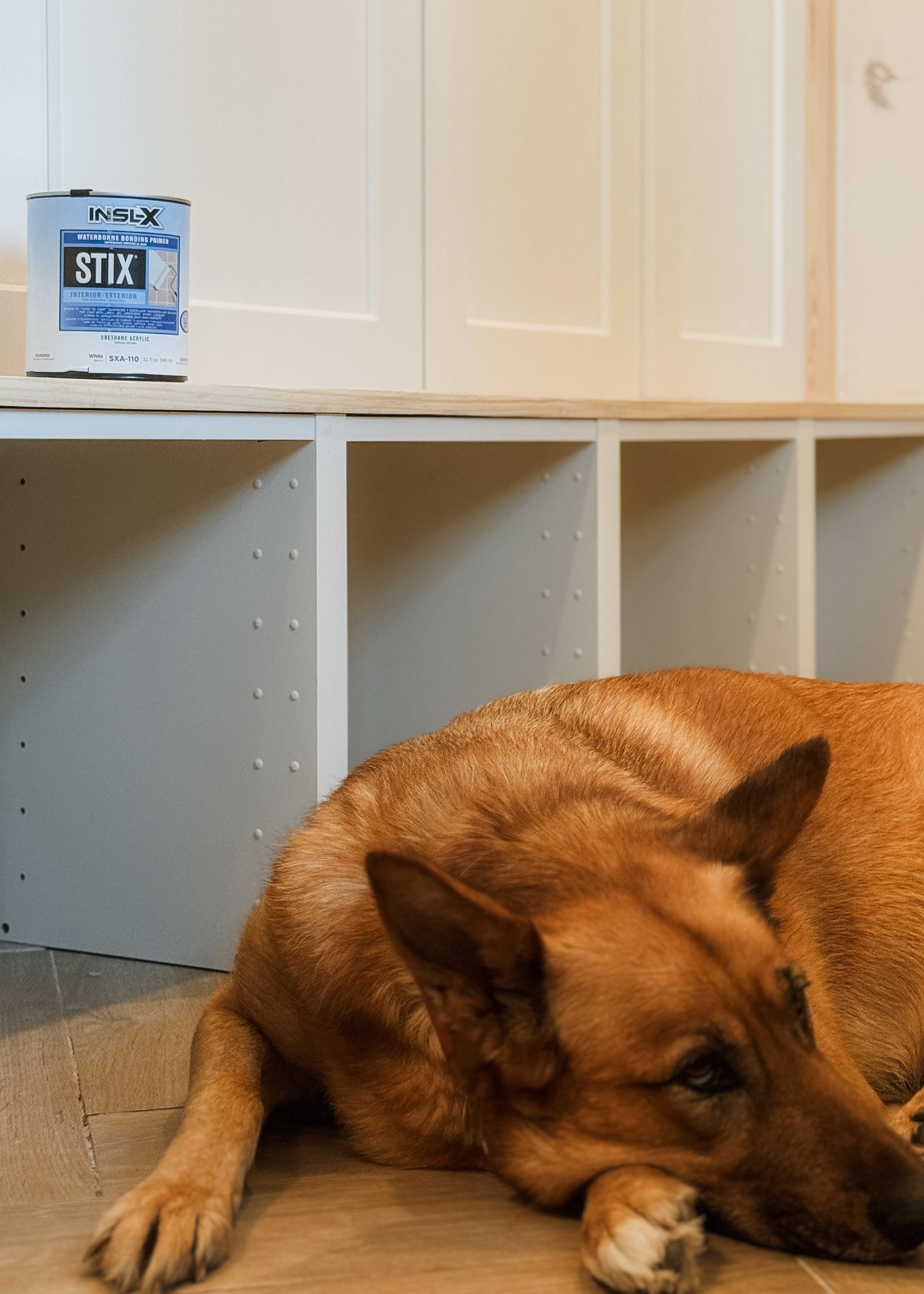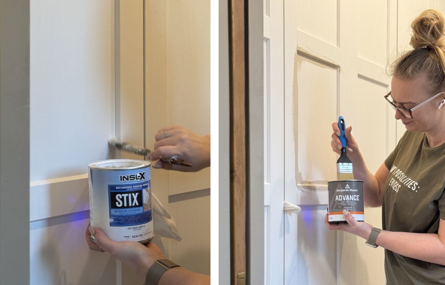 Diana nie do końca wierzyła w moje zapewnienia dotyczące nieziemskiej przyczepności specjalnego SUPER-gruntu marki Benjamin Moore. Jednak po trzech dniach od jego aplikacji na drzwi, szafę i panele przekonała się o mocy STIX’a.