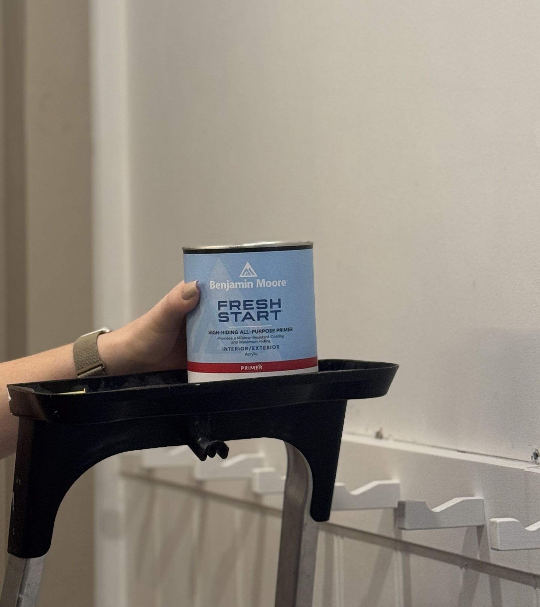 Wodorozcieńczalna emalia alkidowa ADVANCE 792 zabarwiona została na elegancki kolor „Pashmina AF-100” z kolekcji AFFINITY marki Benjamin Moore. Diana naniosła 2 warstwy produktu, który zachwycał rozlewnością i łatwością aplikacji.