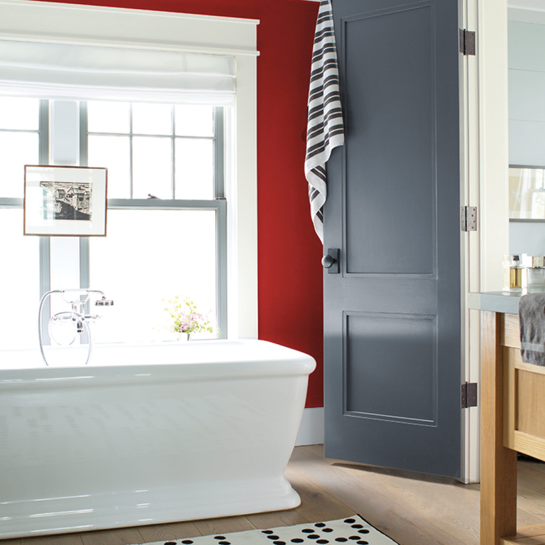 Aura® Bath & Spa Interior Paint Matte 532 tworzy atrakcyjne wizualnie, trwałe, matowe wykończenie. Jest wyjątkowo odporna na działanie podwyższonej wilgotności i temperatury.