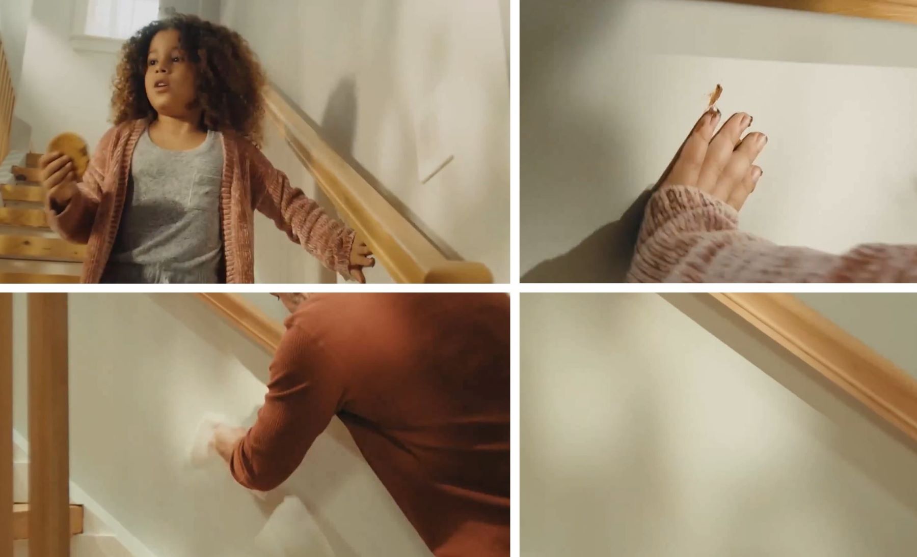 Niestety i w tej przestrzeni ucierpiały śnieżnobiałe ściany w jednym z „Off-white’ów”. Początkowo jeden z dorosłych gości na bieżąco zmywał zabrudzenia, z czasem poddał się i pozostawił klatkę schodową sam na sam z ciasteczkowymi potworami…