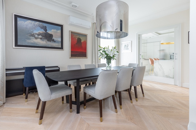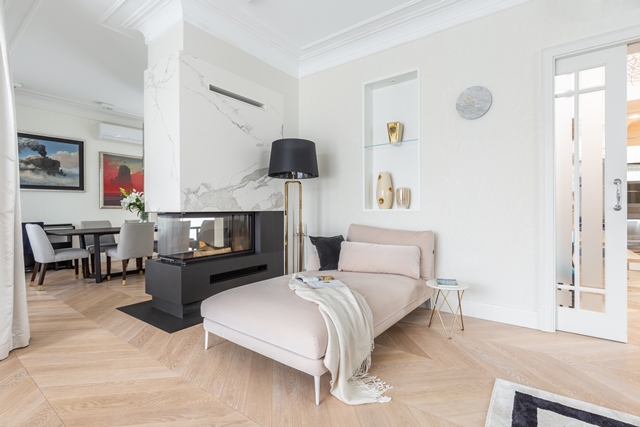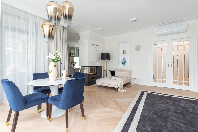 Tak powstały okazałe wnętrza rezydencji, zaprojektowane w duchu ponadczasowej klasyki z elementami art deco.